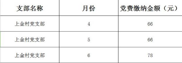 - 金砂乡上金村党支部2020年第二季度党费收缴情况