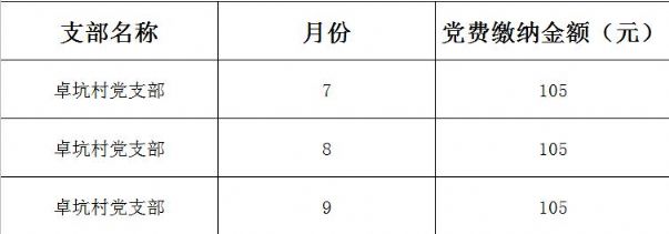 - 金砂乡卓坑村党支部2020年第三季度党费收缴情况