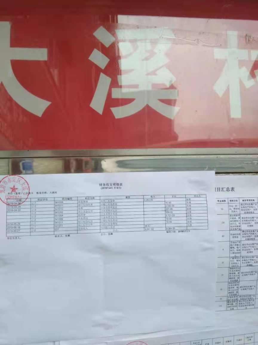 永定区大溪乡大溪村第二季度财务公开图片