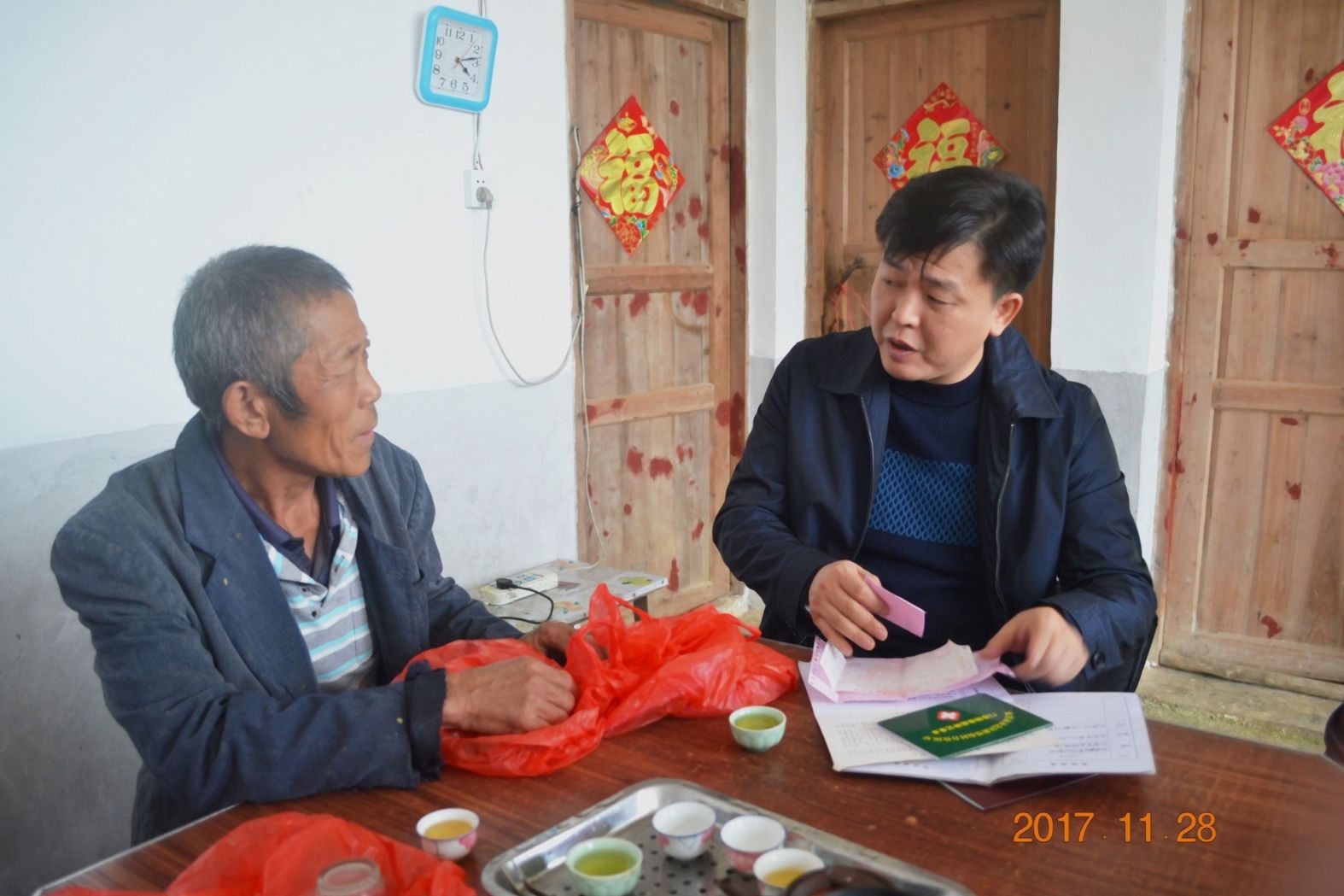 图为陈文操在竹兰村实地走访贫困户了解享受医疗援助政策情况
