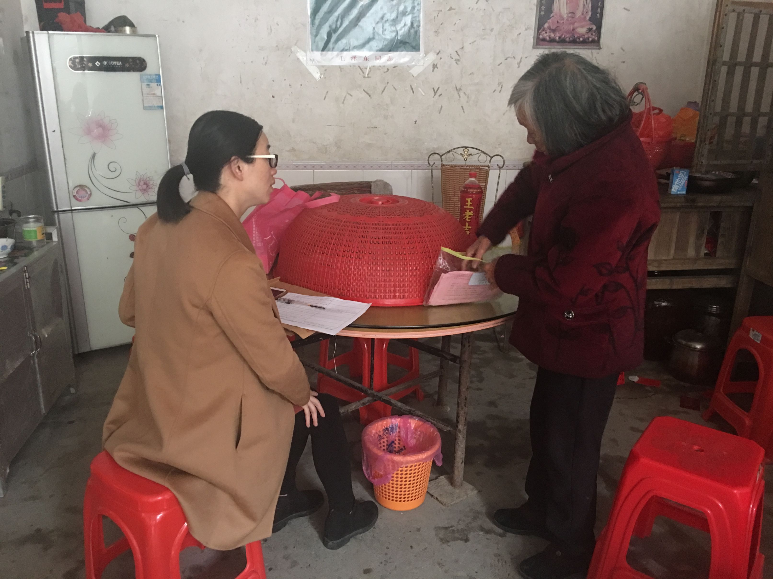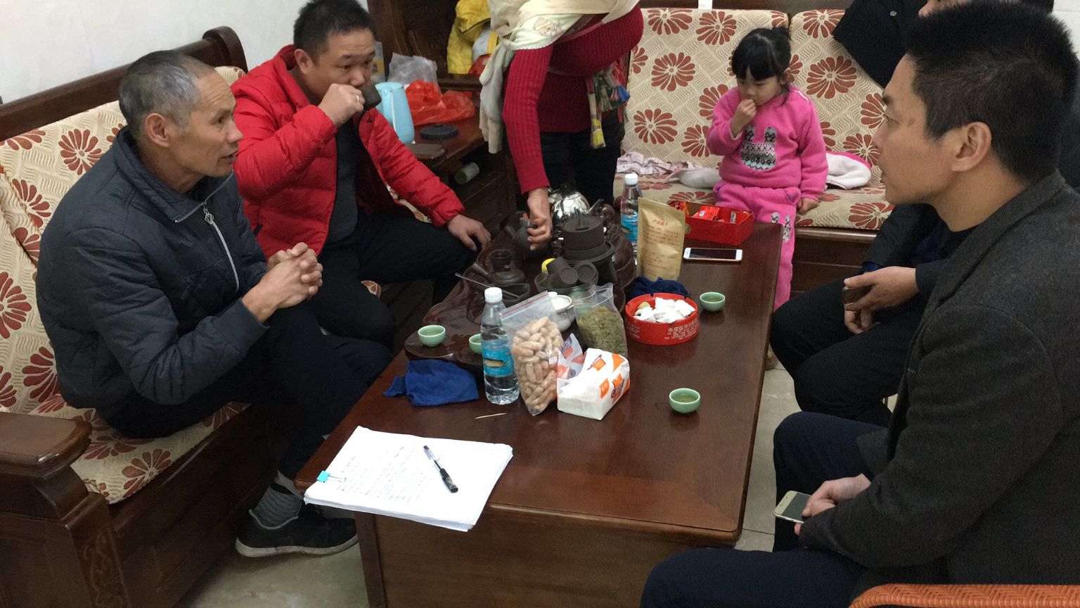 图为春节后上班第一天,龙潭镇纪委入户访查最后一户长期外出贫困户